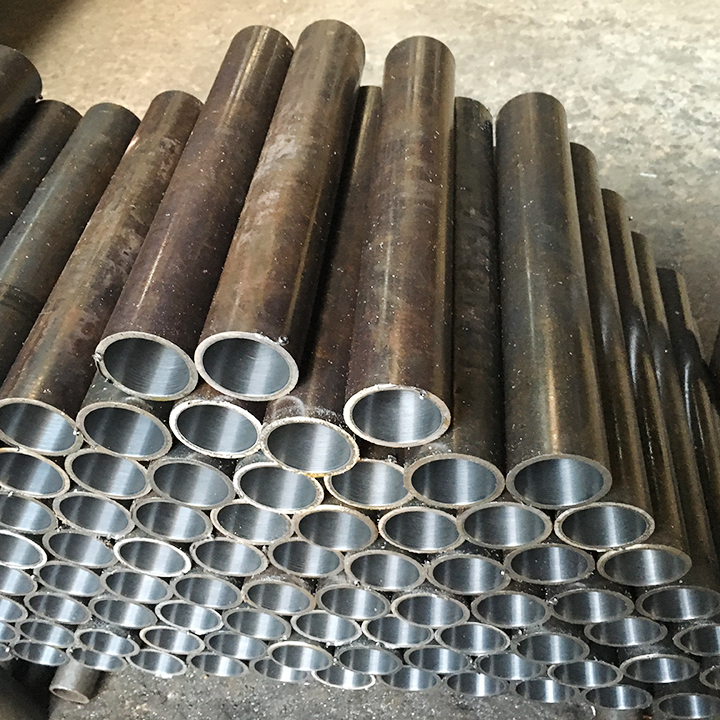 液壓缸筒加工工藝:液壓加工屬于深孔加工范疇,可使用現成的鋼管,焊接后應先進行熱處理,使材料符合要求的機械性能。加工時須使用深孔加工設備,精加工時留有衍磨余量在深孔衍磨機上將內孔衍到尺寸。一般油缸加工廠不對鋼管重新進行冷拔,以采購現成管為主。如果是小型油缸,兩端使用拉桿固定缸頭的話,而且對材料硬度無要求,可使用鋼管直接加工和衍磨。
